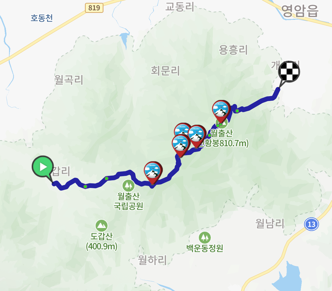 바람폭포쪽 길은 업다운이 덜하고 비교적 완만한 하산길이 이어진다. 심지어! 짧다! 무척 만족하며 내려가서 다음에 월출산 올 때도 이쪽으로 하산할 것 같다 ㅎㅎ