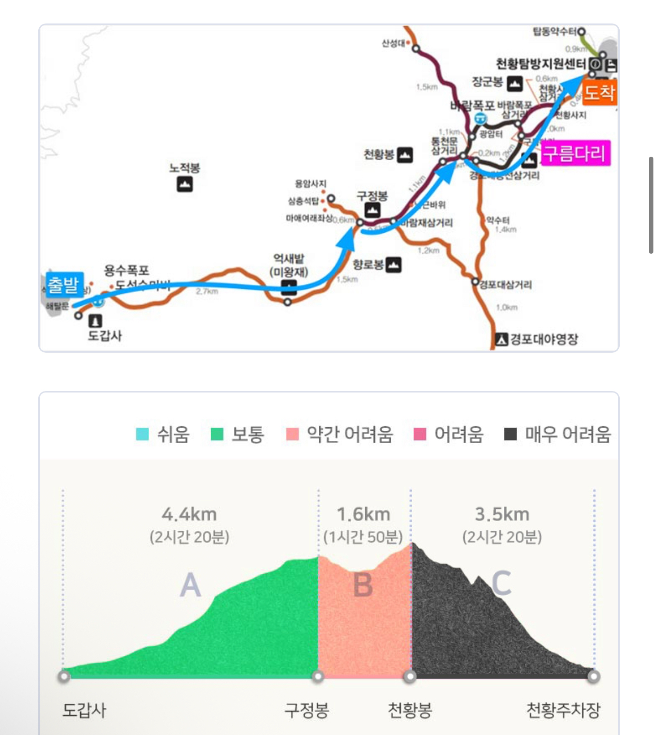 소요 시간 약 6시간(휴식 35분 포함)